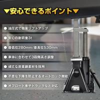油圧 車ジャッキ 汎用 自動車用ジャッキ ガレージ油圧ジャッキ コンパクト ジャッキアップ ボトル油圧ジャッキ 馬 3トンジャッキ タイヤ交換 ダルマジャッキ 携帯ジャッキ 油圧ジャッキ3トン 油圧ボトルジャッキ 2in1 オイル交換 リジッドラック 530mm 280mm オートロック 建築現場 DIY タイヤチェーン オフロード車 トラック ジムニー デリカD5 ランドクルーザー ハイラックスサーフ 軽トラ トラクター 一級自動車整備士 監修 敬老の日 父の日 母の日 プレゼント ギフト クリスマス