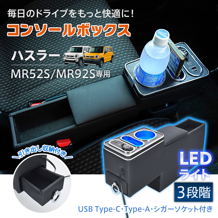 ハスラー 内装 アクセサリー コンソールボックス MR52S スマホホルダー 車 センターコンソール LED ドリンクホルダー コンソール 車用品 大容量 収納ボックス