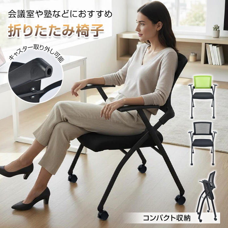 折りたたみ椅子 軽量 コンパクト キャスター ミーティングチェア 会議用椅子 折りたたみ 単品 デスクワーク デスクチェアー オフィス 省スペース 来客用 会場用
