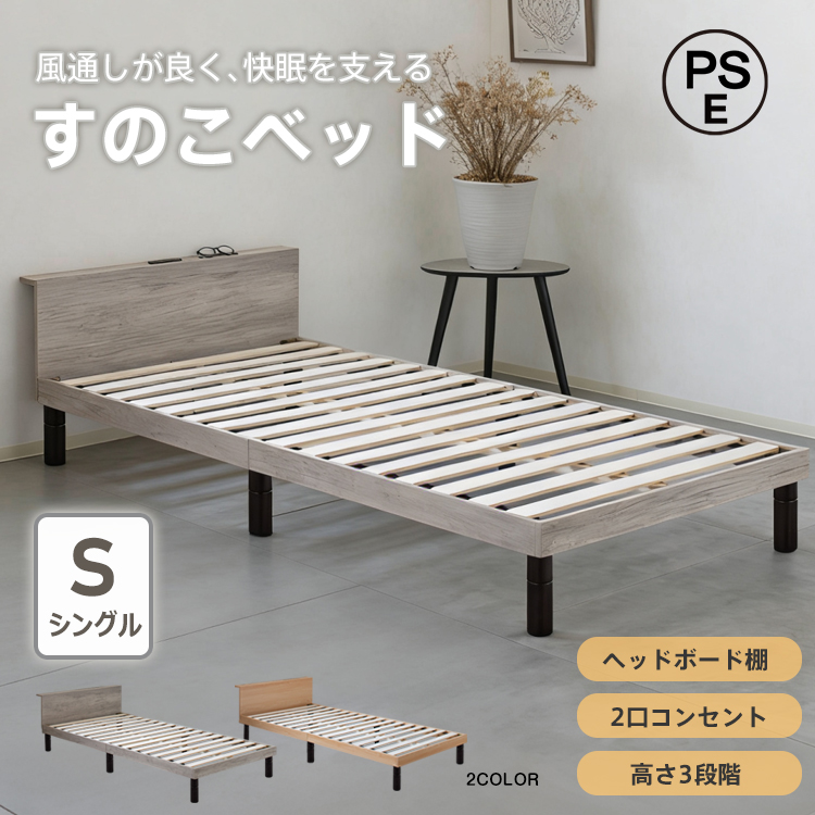 宮付き おしゃれ 木製 2口コンセント付き 宮付きベッド シンプル ベットフレーム ベット スノコベッド 収納ベッド スノコベット 人気 コンセント 宮 下 組み立て 簡単 通気性 良い 一人暮らし 寝室 レイアウト 耐久性 すのこベッド ロー S 1人用 一人用 高さ調整 2口 収納 頑丈 メラミン板 北欧 敬老の日 父の日 母の日 クリスマス プレゼント ギフト