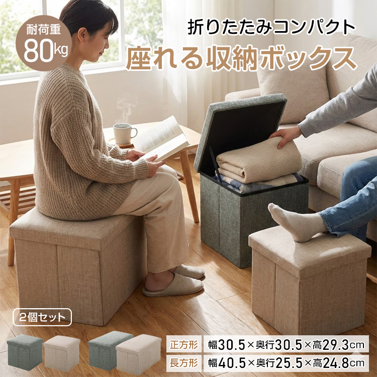 スツール 椅子 収納 高さ30cm 折りたたみ 2個セット 収納ベンチ スクエア おしゃれスツール コンパクト 折りたたみ オットマン 収納ボックス 収納付きスツール