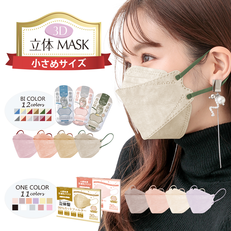 マスク 不織布 30枚 立体 不織布マスク 立体マスク 3dマスク カラーマスク バイカラー 小顔マスク 使い捨てマスク おしゃれ 血色カラー 花粉症対策 韓国 KF94