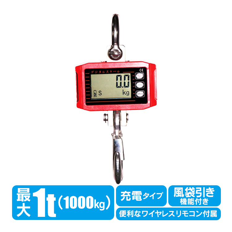 クレーン スケール デジタル 1t 1000kg 電子 吊秤 充電式 小型 電動 ホイスト リモコン 計測 軽量 風袋引き 家庭用 工場 倉庫 自宅 業務 作業 計測 検査 ny510