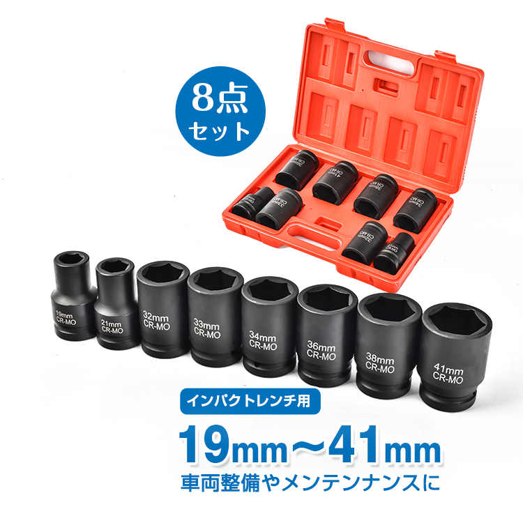 インパクトレンチ ソケット 大型 自動車 8pcs 差込角 25.4mm ソケット レンチ 19mm サイズ 41mm トラック 8本セット DIY 工具 整備 メンテンナス ny552