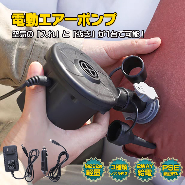 空気入れ 電動空気入れ ボール 電動 エアー工具 ボート ポータブル エアーポンプ 電動エアーポンプ エアーコンプレッサー ポンプ 軽量 小型 エアー空気入れ AC電源 空気抜き シガーソケット ハイパワー ノズル3タイプ エアーボート ビニールプール 浮き輪 自動車 携帯 車 電気 アウトドア キャンプ ノズル 12v 圧縮 真空 布団 防災 衣類 旅行 トラベル 吸引機 圧縮機 エアーベッド レジャーマット ビニールプール ゴムボート 海