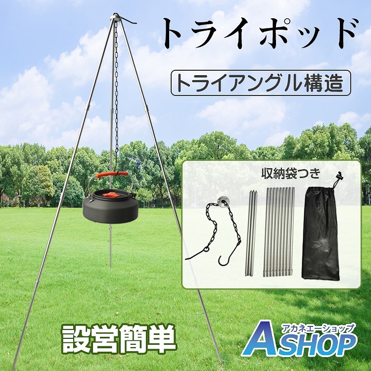 トライポッド 焚き火台 3脚 4段 高さ調整 キャンプ アウトドア バーベキュー 登山 収納バッグつき 携帯便利 組み立て簡単 コンパクト od431