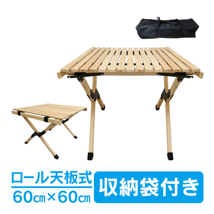 アウトドアテーブル ロールテーブル 60cm 木目 折りたたみ ローテーブル 軽量 ウッドテーブル レジャー ハイテーブル キャンプ テーブル 釣り BBQ od450
