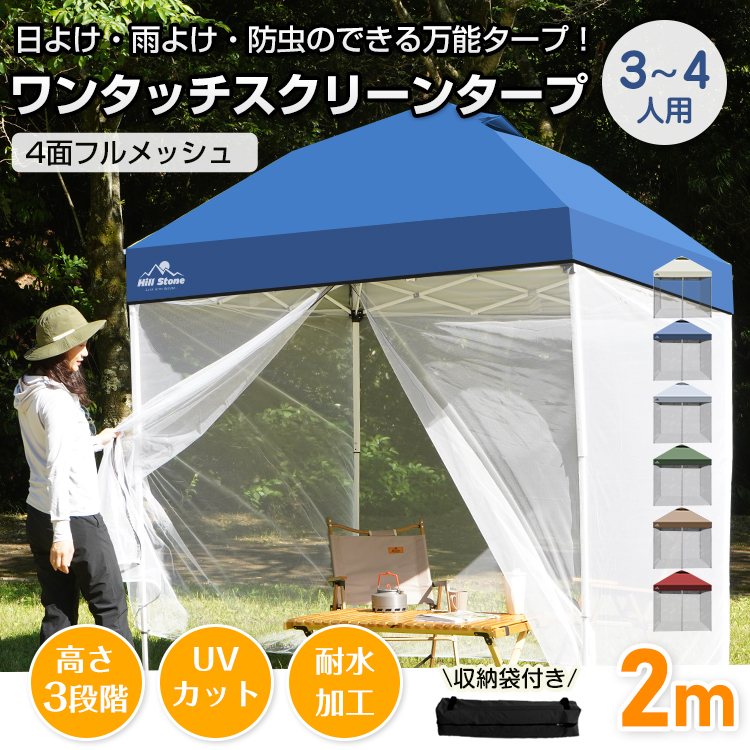 タープ タープテント 2m 2m メッシュシートセット スクリーンタープ ワンタッチタープ テント ワンタッチタープテント ワンタッチ 軽量タープ 日除けテント
