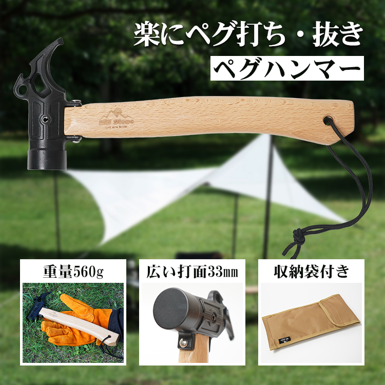 ペグハンマー キャンプハンマー 軽量 キャンプ ペグ ハンマー テント ペグ抜きハンマー 携帯ハンマー ペグ撃ちハンマー タープ アウトドア 金槌 設営 収納袋