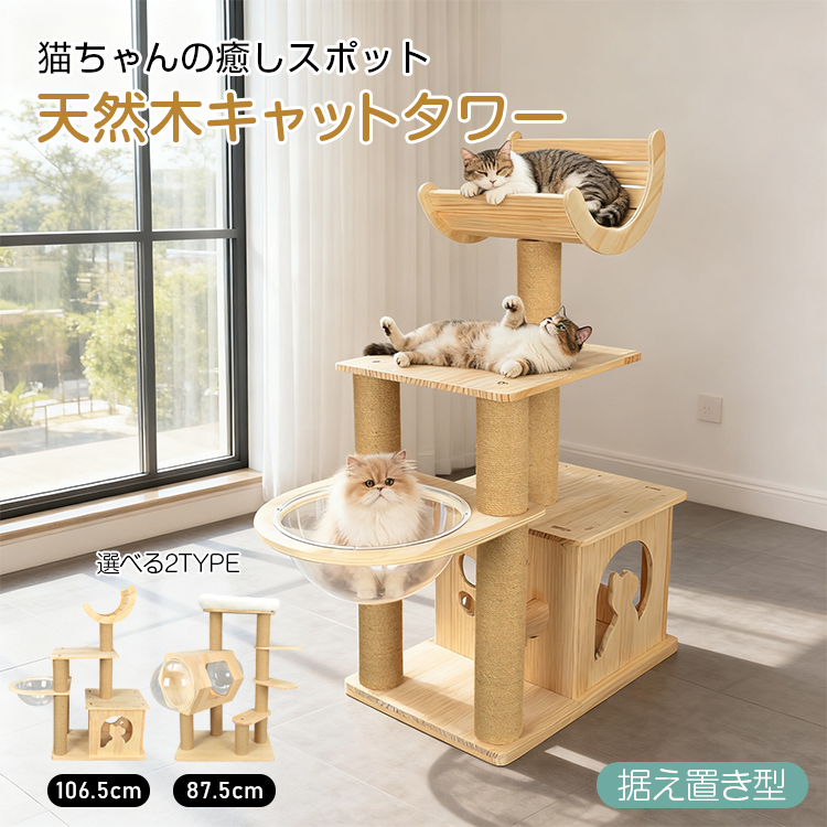 キャットタワー 木製 据え置き 猫タワー 省スペース 宇宙船 シニア猫 低い 天然木 キャット 大型猫用 スリム 短足猫 多頭 木製スリム 老猫 短足 木 おもちゃ 猫