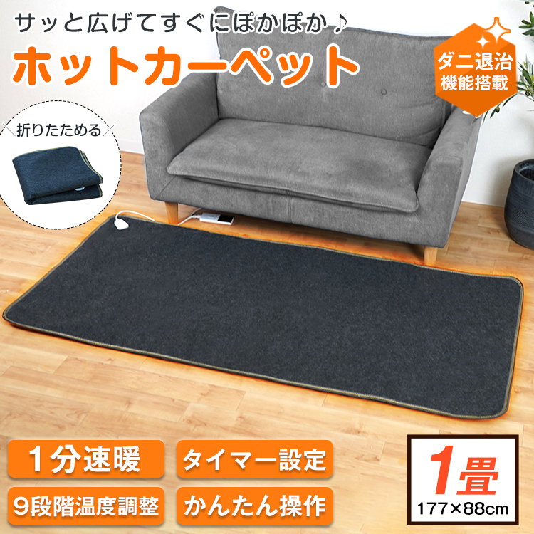 ホットカーペット 1畳 本体 ダニ退治 節電 温度調節 折り畳み 速暖 電気カーペット 電気マット タイマー付き 江戸間 軽量 ペット 冷え性