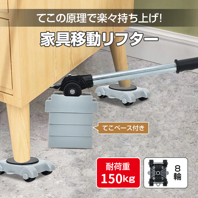 台車 移動キャリー 平台車 家具移動 家庭用 一人暮らし 高齢者 女性 らくらくヘルパーセット 家具持ち上げ 小型 耐荷重150kg 静音 引越し 冷蔵庫 タンス ベッド