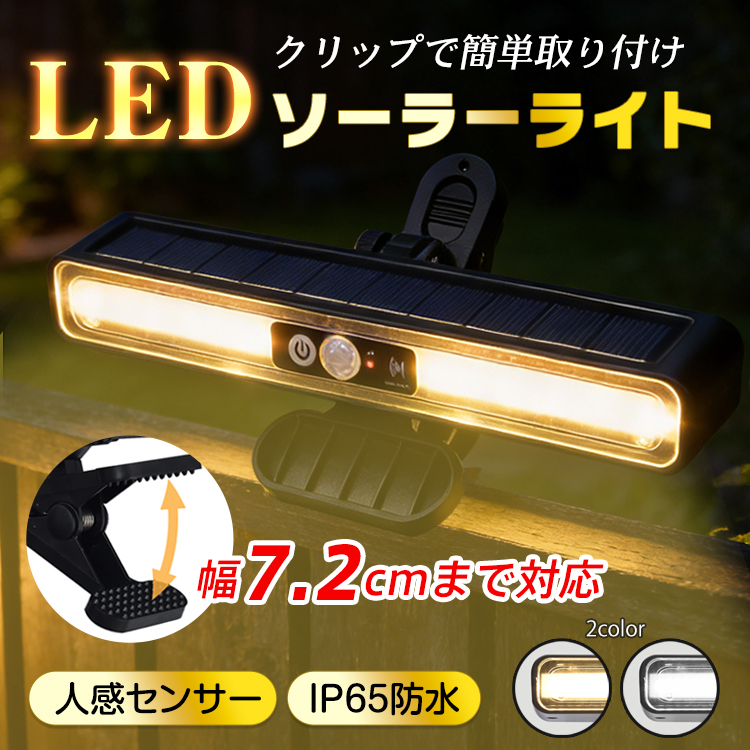 ソーラーライト 屋外 防水 人感センサー クリップ式 ガーデンライト ソーラー センサーライト 自動点灯 自動充電 防塵 高輝度 照明モード切替 IP65 LED 防犯