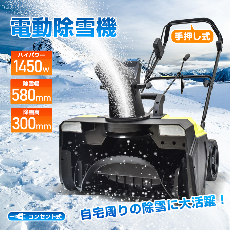電動除雪機 除雪機 小型 家庭用 軽量 手押し式 ハイパワー 1450W 除雪幅58cm 雪かき ロータリー式 コンパクト式 収納 庭 道路 除雪用品 2025 wk005