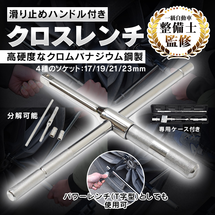 車用品 十字 T字 パワーレンチ 分解式 19mm 21mm 23mm 収納ケース付き 高速回転 空転式 高硬度 高耐磨耗性 カー用品 便利グッズ 敬老の日 父の日 母の日 クリスマス プレゼント ギフト