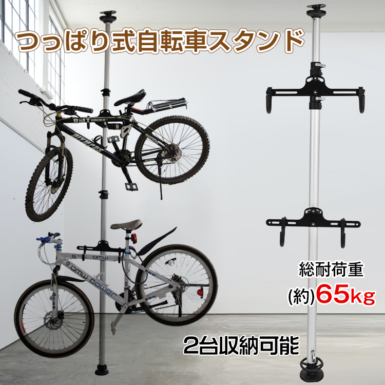 自転車用ディスプレイスタンド 狭いスペース 収納 省スペース 高さ調整 つっぱり式 盗難対策 転倒防止 お手入れ 室内保管 シンプル 新生活 屋内 収納 つっぱり バイクタワー ラック 2台 固定 収納 天井 アクセサリー 敬老の日 父の日 母の日 クリスマス プレゼント