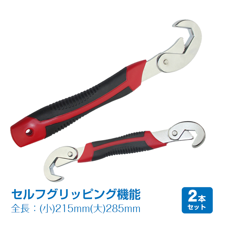 [マジックレンチ 万能 レンチ 蛇口 取り付け 配管工事 大小 2本セット 整備 グリップレンチ 両口スパナ パイプレンチ モンキーレンチ]