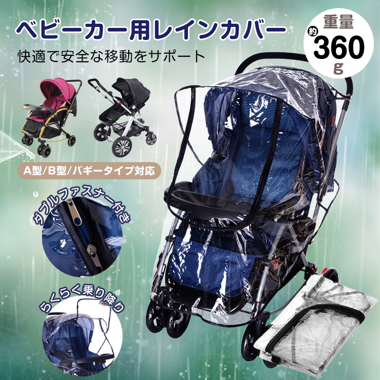 レインカバー ベビーカー ダブルファスナー 梅雨 雨具 A型 B型 赤ちゃん 雨避け ホコリ 寒さよけ 防水 夏 散歩 お出かけ あったか zk183