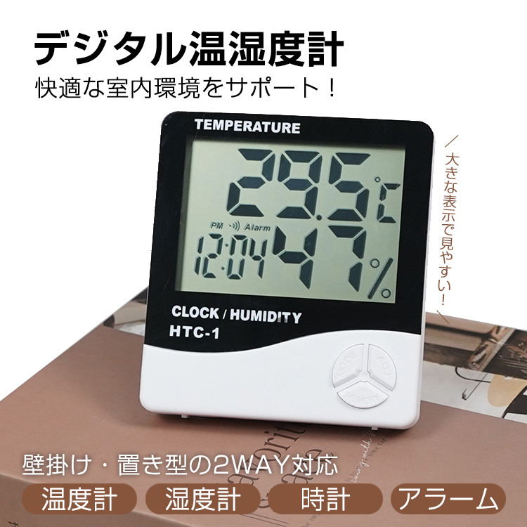 デジタル温湿度計 温度計 湿度計 時計 アラーム 温度 測定器 卓上 スタンド 壁掛け シンプル 熱中症 インフルエンザ 予防 新生活 敬老の日 父の日 母の日 プレゼント ギフト