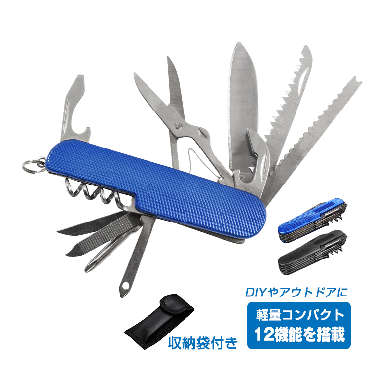 12機能 マルチツール ナイフ サバイバル 折りたたみ アウトドア 万能ナイフ ツールナイフ ケース付 工具 DIY 便利グッズ 防災 キャンプ zk265