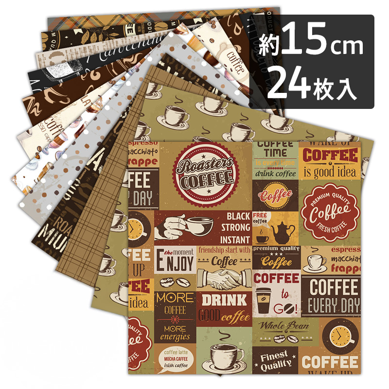 正方形素材紙 6インチ 15.24cm「Coffee Lover 22026」24枚入 160g/m2 厚め コラージュ用品 1100775