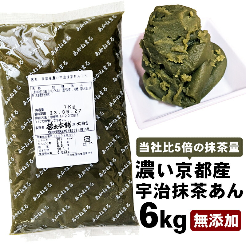 【茜丸・業務用あんこ】濃い京都産宇治抹茶あん 糖度53° 1kg×6P 無添加 抹茶 製菓材料 餡 お菓子 和菓子 材料