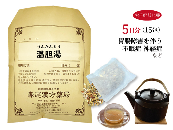 鍋・土瓶などをご利用の場合・・・1回分(1袋)を袋のまま沸騰後のお湯約200ccに入れ、とろ火にて約5分程煎じます。