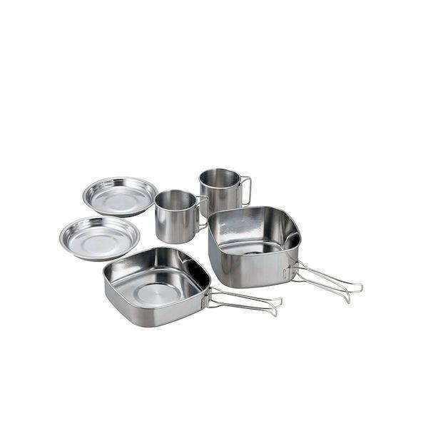 ※ こちらの画像は代表画像となります。部品や類似品等の場合があります。型番と商品名をご確認下さい。 ●角型鍋・角型フライパン・皿×2・マグ×2のペアで使えるキャンピング鍋6点セット。 ●鍋は袋麺が入るサイズです。 ●鍋はコンパクトに収納できます。 ●商品サイズ:角型鍋/直径143×143×67mm(1.08L)、フタ兼用角型フライパン/直径152×152×38mm(0.68L)、マグカップ/直径75×68mm(0.27L)、小皿/直径136×20mm、携帯袋/(縦)270×(横)280mm ●材質:鍋・フタ兼用フライパン/ステンレス鋼(底の厚さ:0.4mm)、マグカップ/ステンレス鋼(底の厚さ:0.35mm)、小皿/ステンレス鋼(底の厚さ:0.3mm)、携帯袋/不織布(ポリプロピレン) ●仕様:直火専用 PP−04ソラリラ角型キャンピング鍋6点セット
