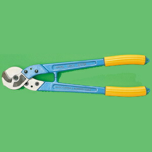 世界がお客様です。製品の安全と満足を国際規格の品質保証でお届けします。銅線ケーブル専用カッターです。●すばらし切れ味 刃部は精密鍛造された刃物用特殊鋼を使用。三角切断法を更に改良して、太い電線を楽に切断できるようにし、その上ケーブルの丸みをほとんど変化させません。●かるい・短い ハンドルに特殊アルミ合金を使用しているので全体質量が非常に軽い。従って全長も短く携帯に便利であるばかりでなく、高い所、狭い所での操作上の支障がありません。●ボルト 刃部のボルトはクロームモリブデン鋼を使用し、中心ナットがゆるむことなく、長く使ってもガタがきません。切断能力(m) iv/150 vvr/22×3心 cv/100 600v-cvt/22全長:455mm質量:1100g