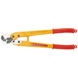 世界がお客様です。製品の安全と満足を国際規格の品質保証でお届けします。銅線ケーブル専用カッターです。●すばらし切れ味 刃部は精密鍛造された刃物用特殊鋼を使用。三角切断法を更に改良して、太い電線を楽に切断できるようにし、その上ケーブルの丸みをほとんど変化させません。●感電事故防止 刃・ボルト(刃とハンドルの固定)以外に金属を使用していないためピンホール、キズなどによる感電事故の心配がありません。●抜群の絶縁性 ガラス繊維入り特殊プラスチック樹脂frpをハンドルに使用。(耐電圧 50,000v)切断能力(m) iv/150 vvr/22×3心 cv/100 600v-cvt/22全長:460mm質量:980g