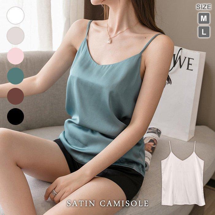 キャミソール レディース 春 夏 春夏 黒 白 ス インナー サテン ホワイト ベージュ ピンク グリーン ブラウン ブラック 大人 20代 30代