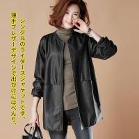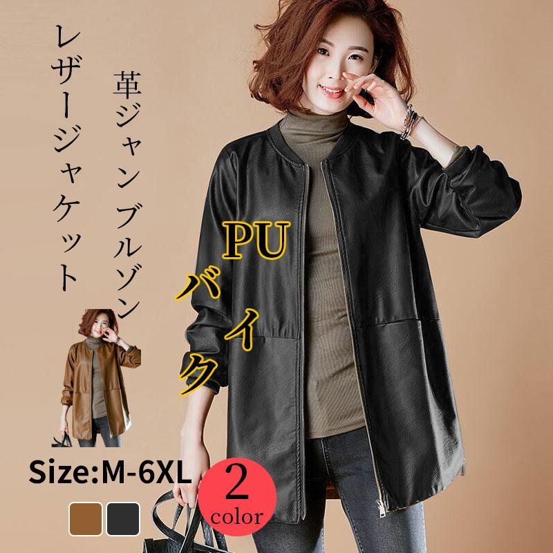 レザージャケット レディース 革ジャン ブルゾン アウター 柔らかい 体型カバー PU 大きいサイズ おしゃれ 着痩せ 秋冬 バイク 防寒