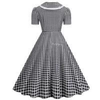 レトロワンピース 水玉柄フレアワンピース半袖パーティードレス チェック柄 リボン襟 大きい裾 ロング丈 フランス風 レディースダンス衣装