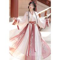 中国古代服装 レディース 漢服 中華コスプレ衣装 3点セット 花刺繍 華流 ハロウィン 衣装 かわいい 花柄 刺しゅう プリント 配色 シフォン 飄逸
