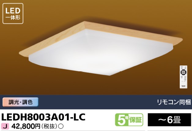 電球色+昼光色 リモコン付 〜6畳 調光 調色 LEDH8003A01-LC 東芝 LEDシーリングライト 和風 ホテル 旅館