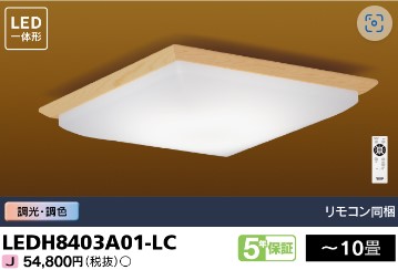 電球色+昼光色 リモコン付 〜10畳 調光 調色 LEDH8403A01-LC 東芝 LEDシーリングライト ベーシック 和室 和風