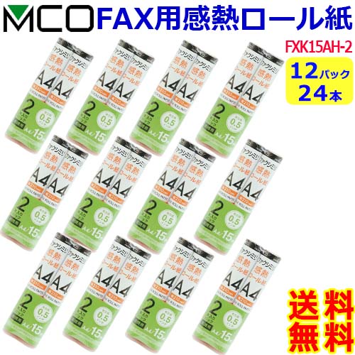 ミヨシ MCO FAX用感熱ロール紙 FXK15AH-2 A4 0.5インチ 15m巻 2本入【お得な12パック24本】ファックス紙 faxロール紙 Fax用紙 fax 感熱紙【送料無料t】