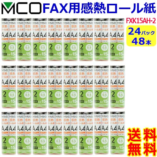 ミヨシ MCO FAX用感熱ロール紙 FXK15AH-2 A4 0.5インチ 15m巻 2本入 【お得な24パック48本】ファックス紙 faxロール紙 Fax用紙 fax 感熱紙【送料無料t】