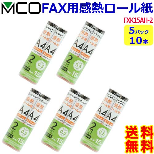 ミヨシ MCO FAX用感熱ロール紙 FXK15AH-2 A4 0.5インチ 15m巻 2本入【5パック10ロール】ファックス紙 faxロール紙 Fax用紙 fax 感熱紙【送料無料t】