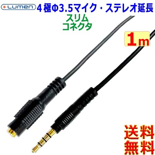 ルーメン Lumen Φ3.5mm 4極オーディオケーブル延長【1m】LAV-4AEX10 CTIA OMTP 音声 マイク 金メッキ M to F ステレオジャック【送料無料n】Audio AUX cable