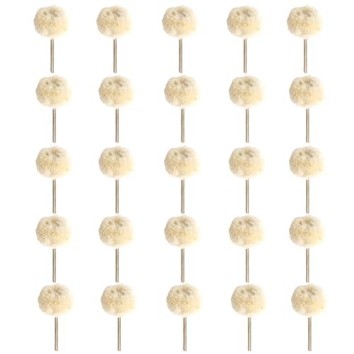 MHSKNHW ミニリューター用バフ 2.35mm 25個入り ウールフェルトポリッシュヘッド 鏡面研磨・金属磨き用 磨きヘッドセット リュータ