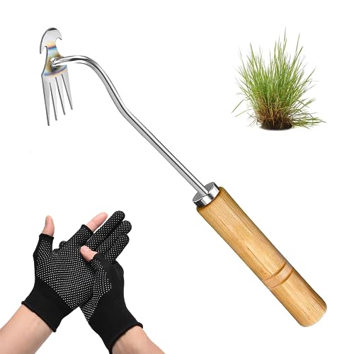 MAGPIE 草取り 草刈り 雑草 草取り道具 木柄 ストラップホール付き 草むしり 草抜き 雑草ブラシ 多機能省力除草鍬 滑り止めグローブ付き