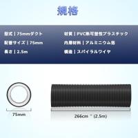 ダクトホース 75mmフレキシブルダクト 四層構造排気ホース 蛇腹排気ダクト 換気用アルミホース 耐熱 防水 冷却換気2.5m