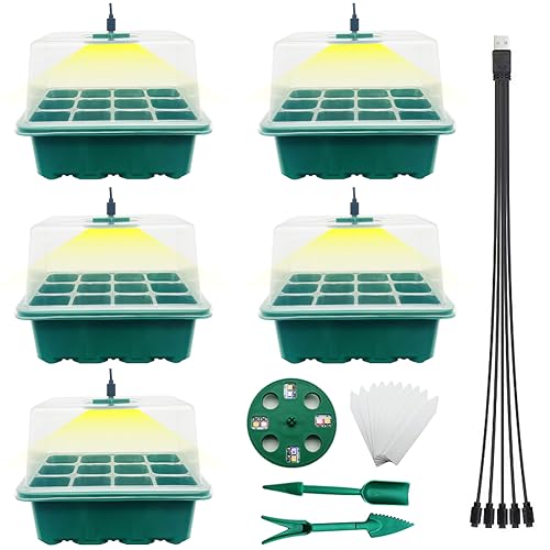 育苗ポット植物育成ライト付き 育苗トレイ 育苗箱 12穴 5個セット 高くする透明カバー 種子トレイ 発芽?育苗セット 種まきハウス 苗箱 種ま