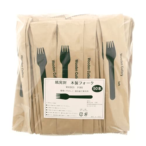 中村 使い捨てフォーク 木製 個包装 未晒紙 ナチュラル 約160mm 50本入