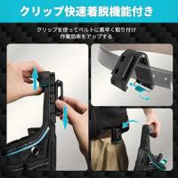 ・クリップ快速着脱機能現場の作業員からの声をいただき、ベルト通しとグリップを同梱して、快速着脱機能を実現しました。快速着脱機能により、必要な道具を交換する時はすぐにベルトから外して、そして装着することができます。作業の効率を向上させます。