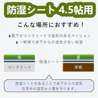 ・適用場所畳の下に使える防湿シートです。フローリング施工時の床の湿気防止対策にもお使いいただけます。床下の地面やコソクリート基礎の上、地下室の防湿など、湿気が気になる場所に。防湿シート 4.5帖用は粘度がなく、畳の下に置くと逃げてしまう可能性があるので、くっつけたほうがいいです。ハサミやカッタ