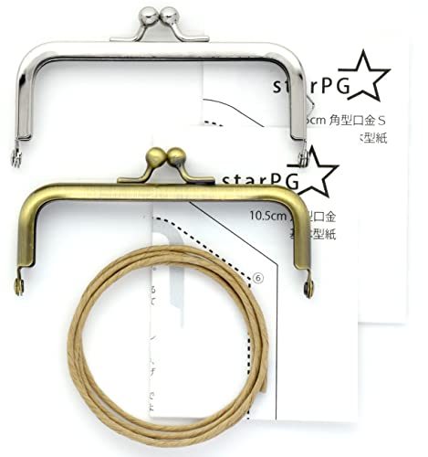 starPG 差し込み式 がま口 口金 入門 セット 口金2種 型紙 紙紐 付き 角型 10.5cm アンティークゴールド シルバー