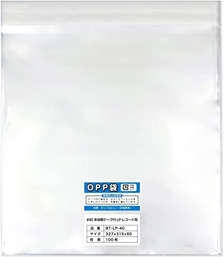 レコード袋12インチ LPレコード用 本体側開閉自在テープ付 OPP袋 327x315+60mm 40ミクロン厚100枚