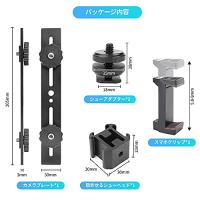 ・双頭デザインのカメラプレート?二つの1/4ネジ&自由に調節一字型のダブルブラケットは二つ標準1/4 ネジ付きのデザインで、カメラ、フラッシュ、ストロボ、ビデオライト、マイクなどを同時に固定して、様々な撮影ニーズを満たします。また、取付位置を自由に調整できます。?3点の1/4ネジ穴+1点の3/8ネジ穴フラッシュプレートの真ん中に、各一点の1/4ネジ穴と3/8ネジ穴も設置され、ライトスタンド、ハンドル、三脚、一脚、スタビライザー、ジンバル、雲台にも簡単に設置できます。また、二つの1/4ネジを固定するツマミのベースにも1/4ネジ穴も付きで、拡張性をより高く向上させます。
